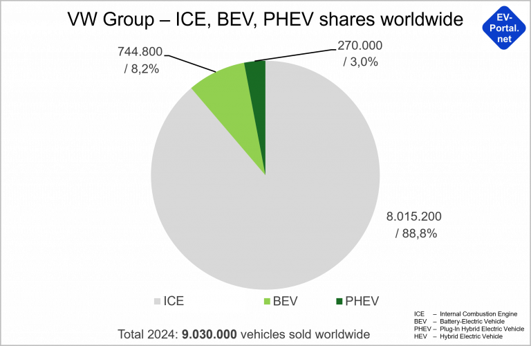 - The global share of combustion vehicles in VW’s total sales was still almost 90% in 2024.